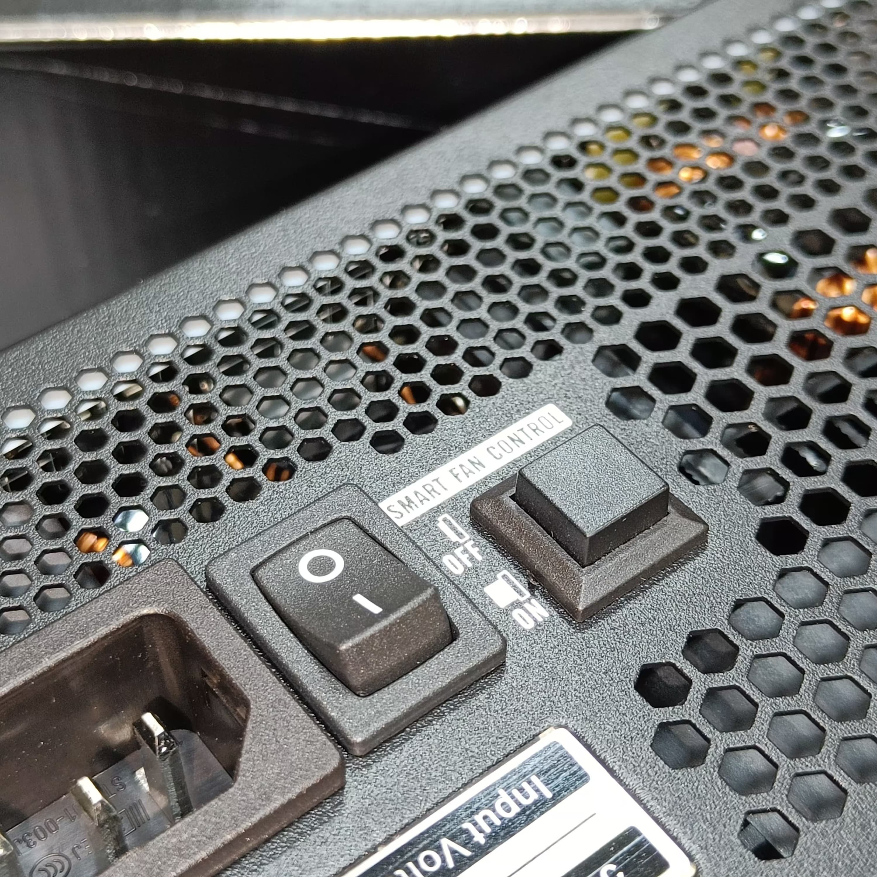 У блока питания 1stPlayer NGDP Gold 1000W предусмотрен гибридный режим охлаждения, который включается кнопкой на задней стенке устройства.
