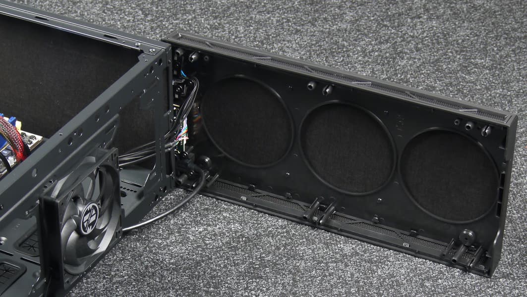 Зато уровень шума и при напольном, и при настольном размещении корпуса очень низкий во всем диапазоне регулирования напряжения вентиляторов (от 5 до 12 вольт). Таким образом, свое название корпус оправдывает.