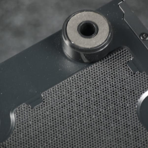 Боковые стенки представляют собой стальную панель с обычной пазогребенной системой, как в бюджетных корпусах. Их крепление осуществляется двумя винтами с накатной головкой. Точнее, винты тут с напрессованной пластиковой накладкой — это такой эконом-вариант исполнения винта с накатной головкой.