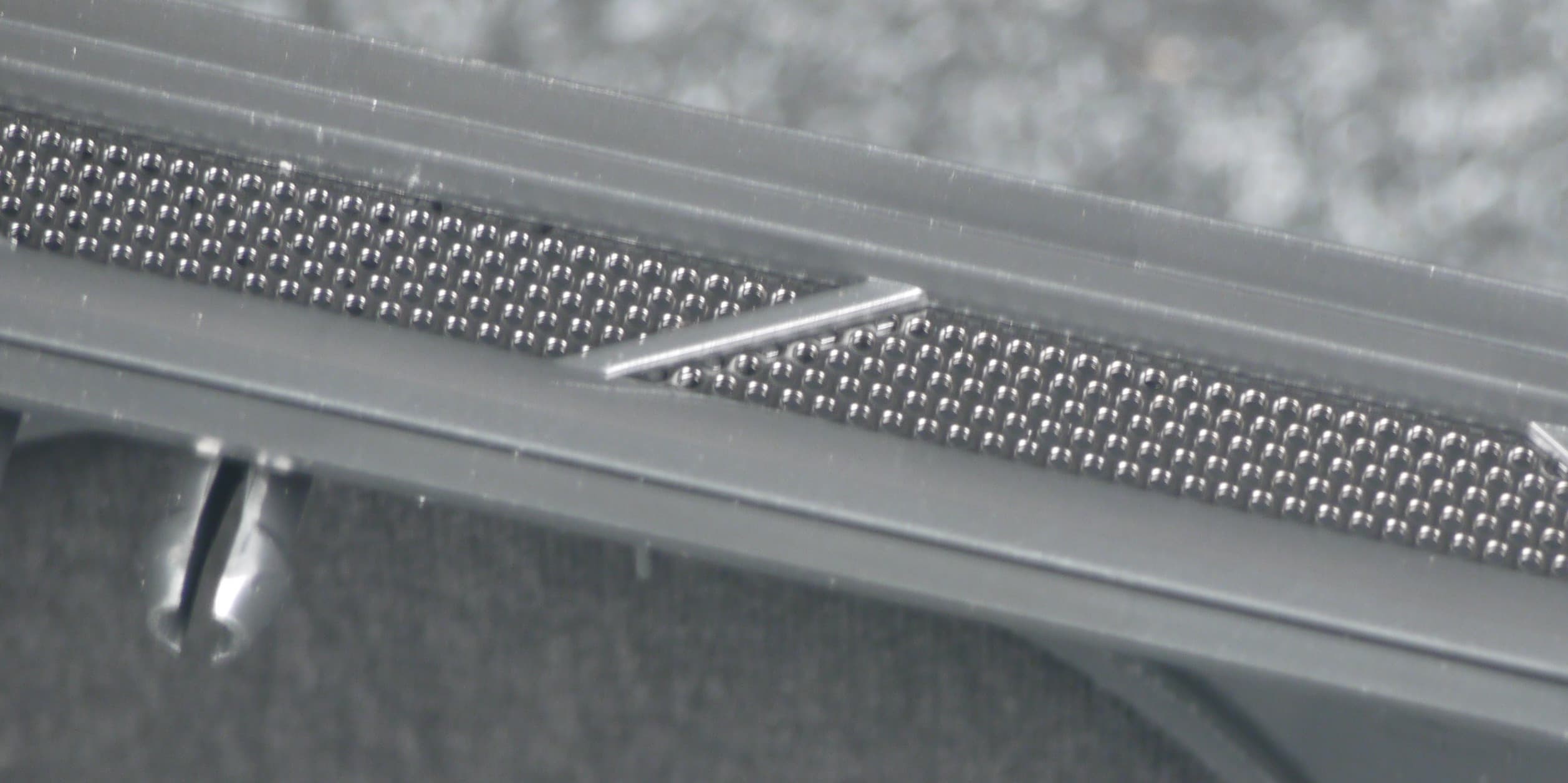 Спереди полноценного фильтра, закрывающего все отверстия, также нет. Правда, приточные отверстия, расположенные на торцах передней панели, прикрыты крупноячеистой стальной сеткой, но фильтрующая способность у нее примерно такая же, как у упомянутого выше элемента.