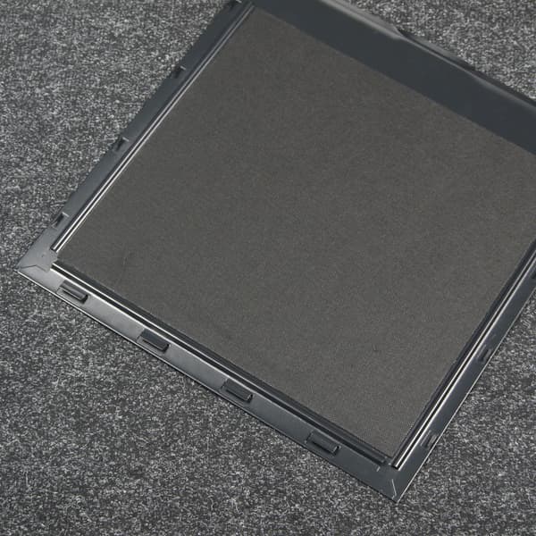 Фильтр под блоком питания выполнен из крупноячеистой сетки, которая представляет собой проштампованный лист пластика с круглыми отверстиями. Рамки он не имеет. И если снять его на ощупь еще как-то можно, то поставить обратно уже затруднительно. Такой же фильтр есть в районе корзины для дисков.