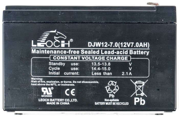 В нашем экземпляре была установлена свинцово-кислотная аккумуляторная батарея Leoch DJW12-7.0 с заявленными напряжением 12 В и емкостью 7 А·ч. Ее вес, кстати, определяет половину веса ИБП в целом.