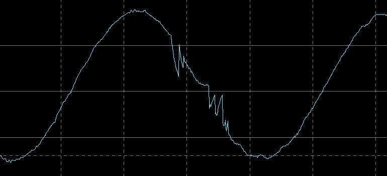 В сети нашей лаборатории суммарный коэффициент гармонических составляющих находился на уровне 0,7%-0,8%, на выходе ИБП в нормальном режиме и на линейной нагрузке не превышал 1,5%, отклонение по частоте не более 0,2 Гц.