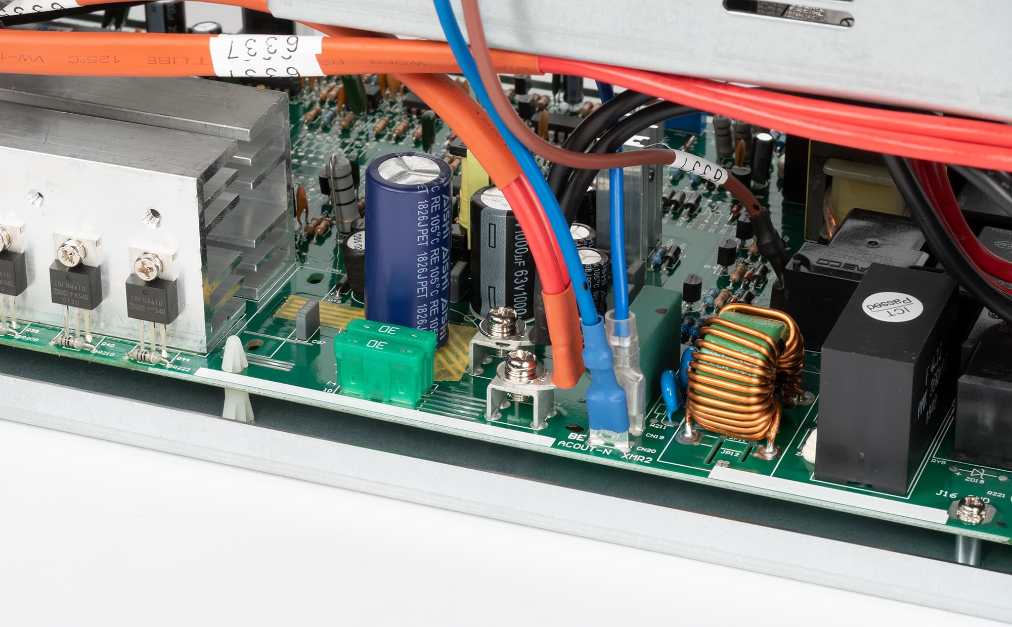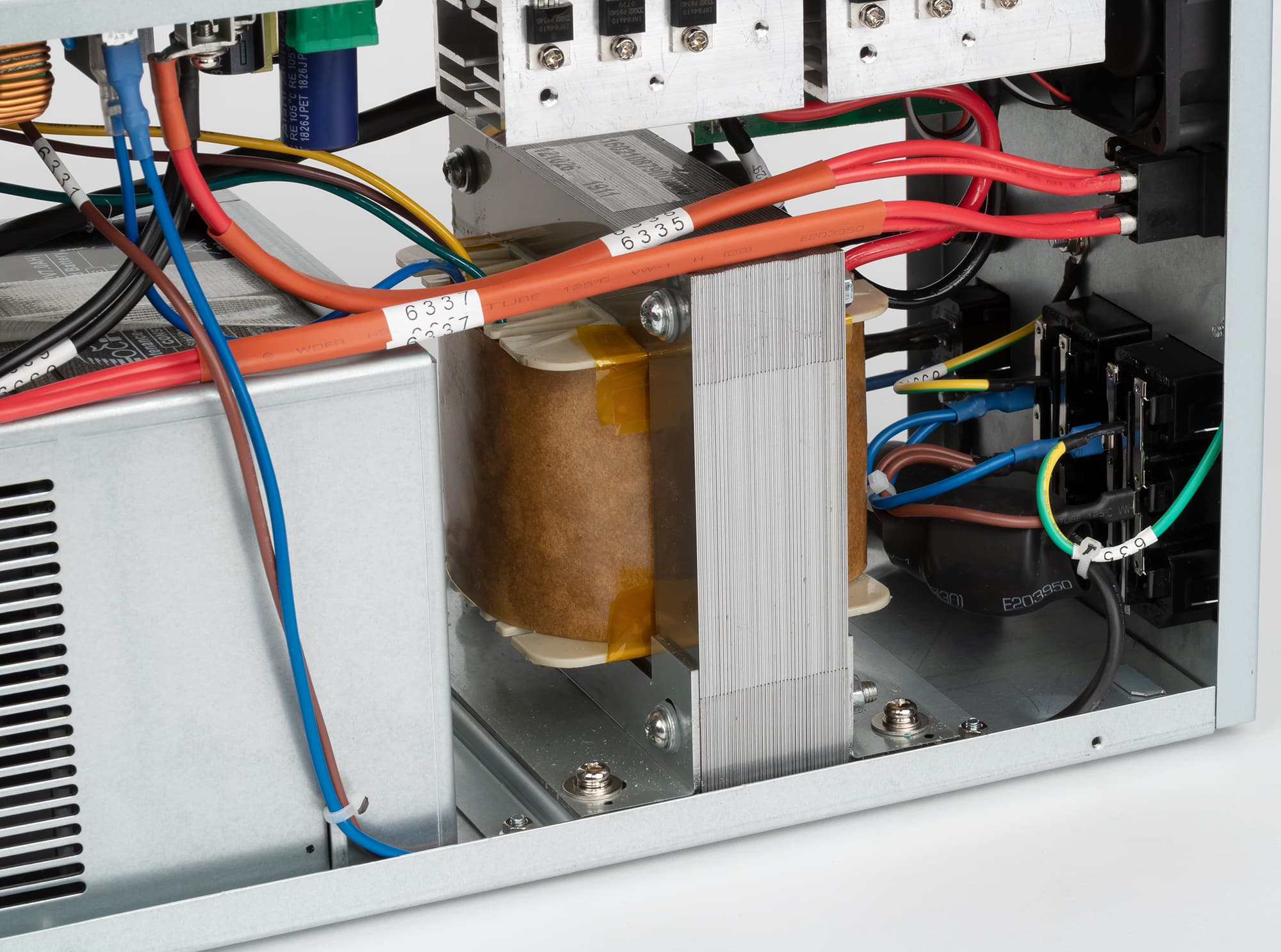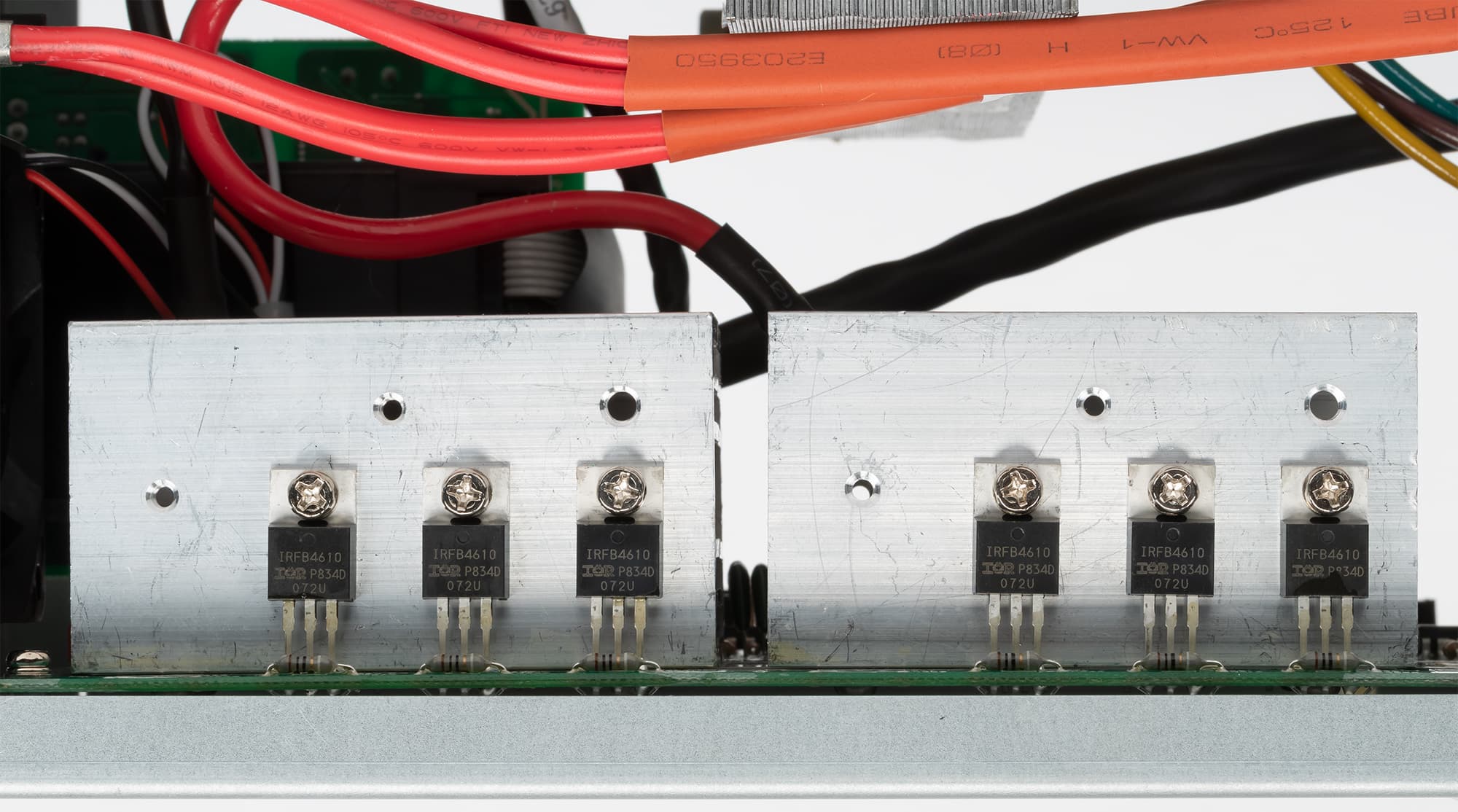 Мощные транзисторы инвертора и другие элементы, имеющие значительный нагрев, закреплены на алюминиевых ребристых радиаторах, которые расположены максимально близко к вентилятору.