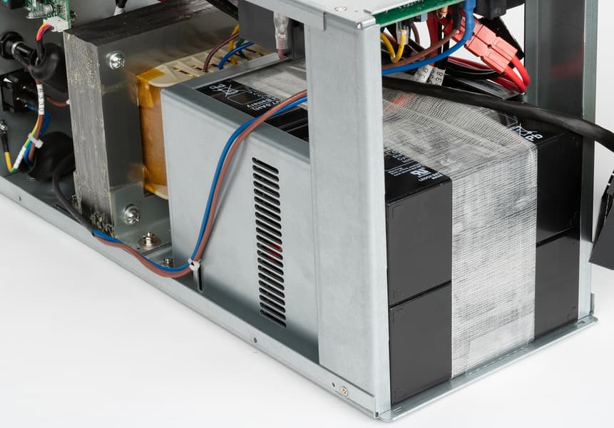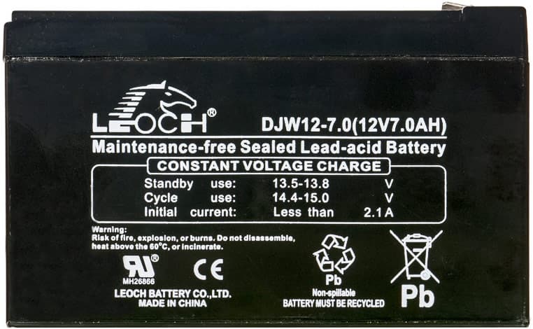 В нашем экземпляре были установлены четыре свинцово-кислотные аккумуляторные батареи Leoch DJW12-7.0 с заявленными напряжением 12 В и емкостью 7 А·ч, соединенные последовательно. Каких-то балансировочных элементов не предусмотрено, что вполне привычно для ИБП данной ценовой категории.