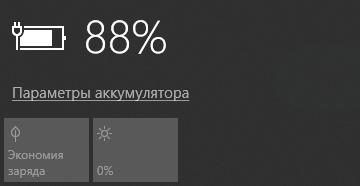 А в области уведомлений панели задач — иконка батареи, после наведения на нее курсора открывается окно с дополнительными параметрами.
