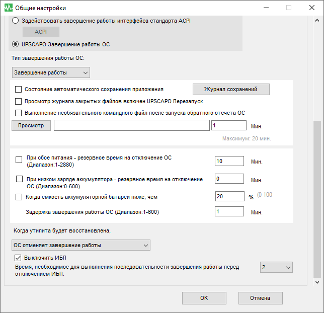 Некоторые состояния — переход на работу от батарей, перегрузка — сопровождаются звуковыми сигналами, некоторые из них можно отключать (см. выше).