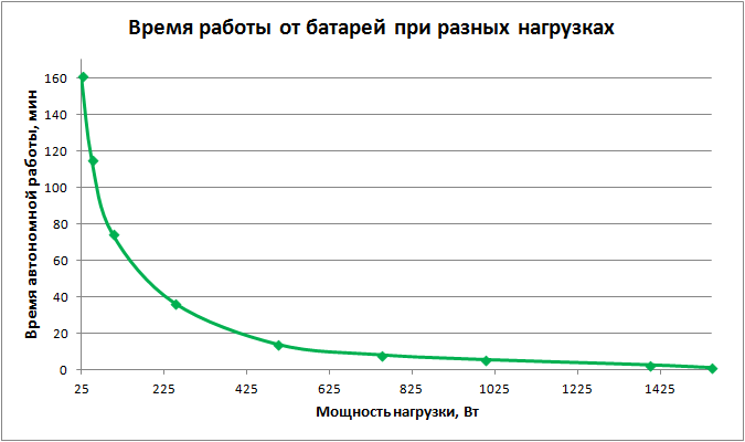 Перейдем к тестированию автономной работы с разными нагрузками. Вот результаты в виде графика: