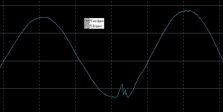 Входное напряжение понизилось, включается повышающая ступень AVR (напомним: цена деления по горизонтали 5 мс):