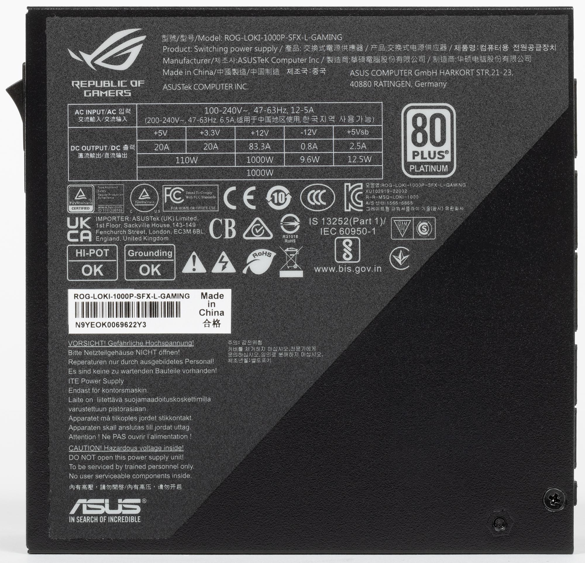 | Asus ROG Loki SFX-L 1000W Platinum | 70,7 |