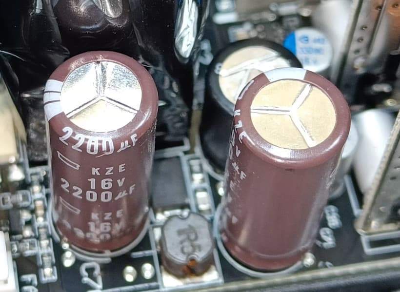 Конденсаторы в блоке питания имеют японское происхождение. В основной массе это продукция под торговыми марками Nippon Chemi-Con и Rubycon.