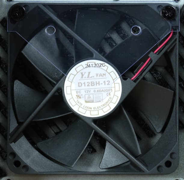 В блоке питания установлен вентилятор Yate Loon D12BH-12 типоразмера 120 мм, подключение двухпроводное, через разъем.