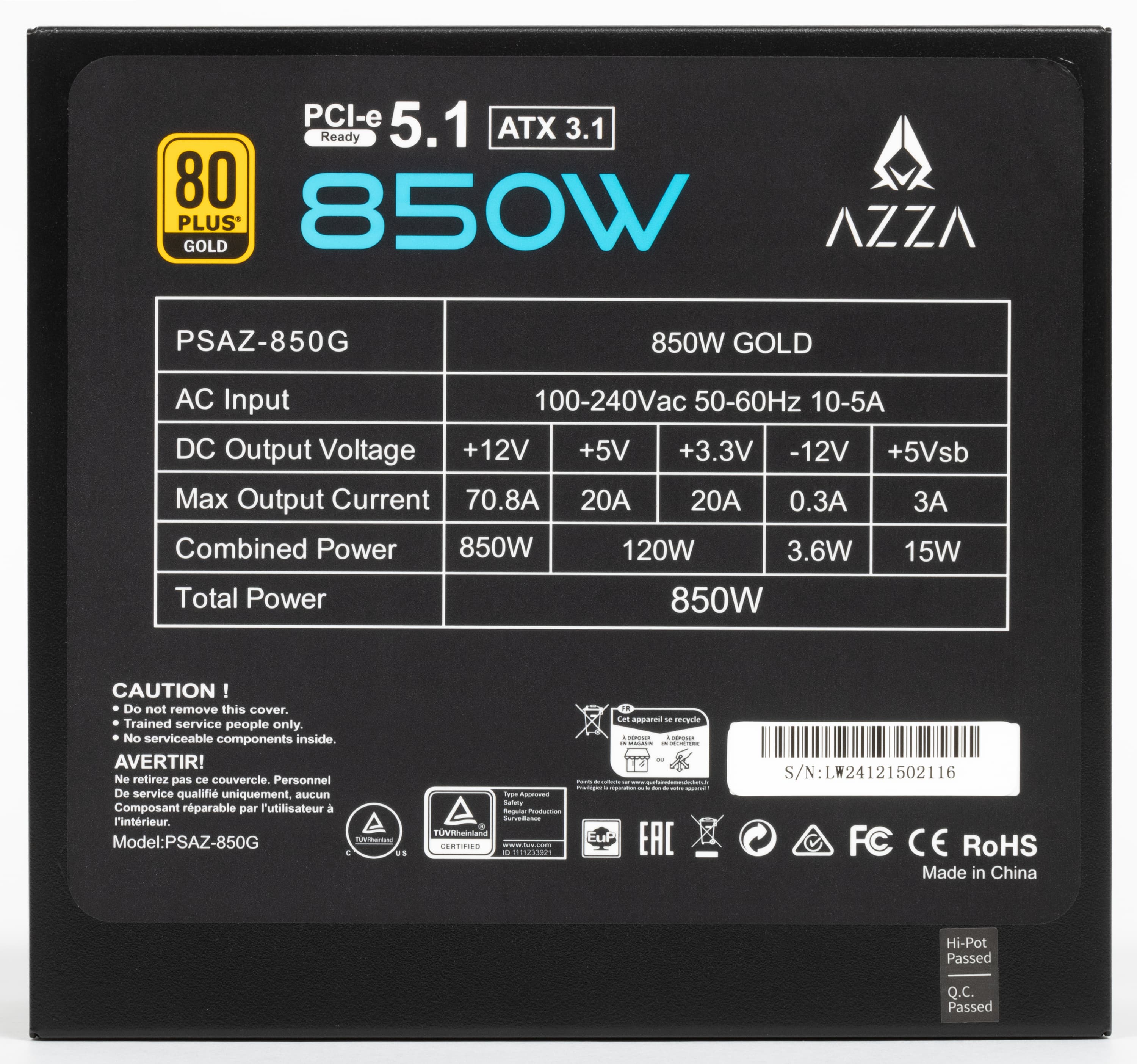 | Azza PSAZ-850G | 232 | 999 | 1905 | 3725 | 4687 |