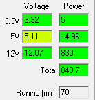 С другой стороны, иногда нужно объективно оценить экономичность компьютерного блока питания. Под экономичностью мы подразумеваем потерю мощности при преобразовании электроэнергии и ее передаче к конечным потребителям. И для оценки этого КПД не нужен, так как можно использовать не отношение двух величин, а абсолютные значения: рассеиваемую мощность (разницу между значениями на входе и выходе блока питания), а также потребление энергии источником питания за определенное время (день, месяц, год и т. д.) при работе с постоянной нагрузкой (мощностью). Это позволяет легко увидеть реальную разницу в потреблении электроэнергии конкретными моделями БП и при необходимости рассчитать экономическую выгоду от использования более дорогих источников питания.