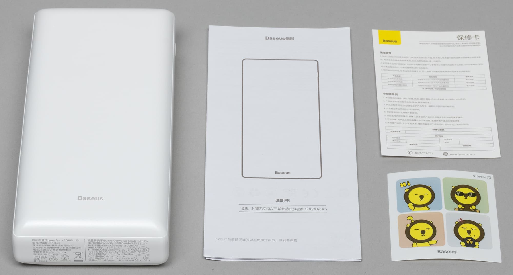 Baseus подобные сведения приводит, просто не надо лениться читать написанное мелким шрифтом, тогда найдем и энергию (111 Вт·ч), и КПД (не менее 80%), а для тех, кто плохо считает в уме и не любит калькуляторы (даже имеющиеся в любом смартфоне), дается и значение фактической емкости, учитывающее сказанное нами выше и составляющее 18000 мА·ч — вот от этой величины и надо «плясать», оценивая соответствие или несоответствие заявленному.