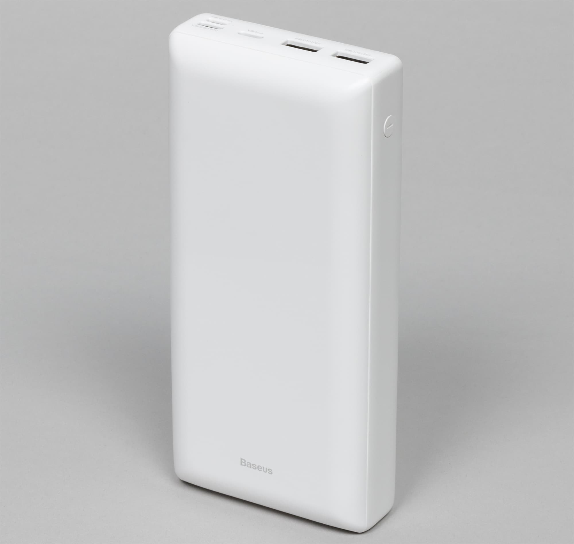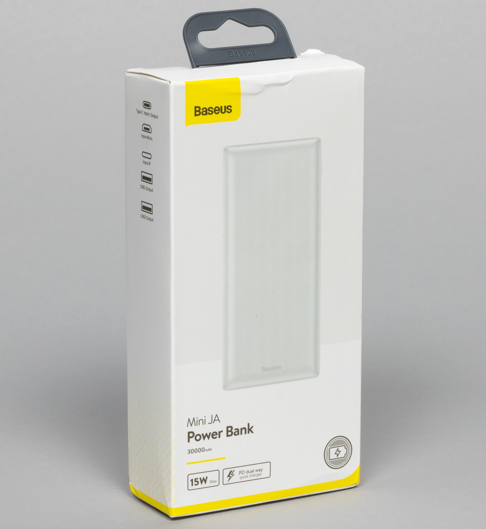 Мы рассмотрим один из пауэрбанков, предлагаемых компанией — Baseus Mini JA, имеющий очень высокую заявленную емкость батареи: целых 30 А·ч. Правда, на сегодня это не рекорд (хотя для Baseus пока максимум), но еще недавно даже такое трудно было себе представить. Понятно, что подобный внешний аккумулятор не может быть крошечным и легким: габариты и вес устройства впечатляющие, и трудно представить, что кто-то будет носить его с собой каждый день.