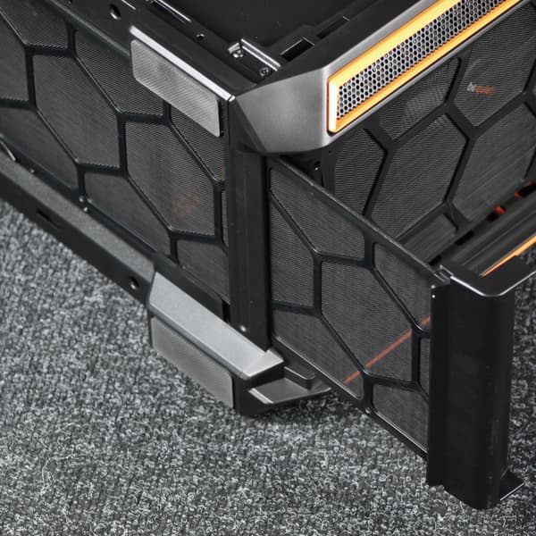 Корпус представляет собой решение башенного типа с вертикально размещаемой платой формата E-ATX (шириной до 280 мм) или ATX (и менее габаритной) и нижнерасположенным блоком питания с горизонтальным размещением.