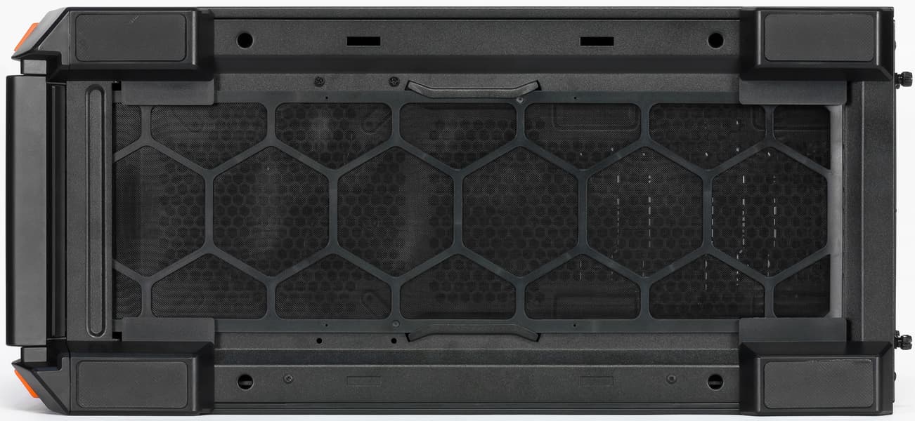Верхняя панель выполнена из стали, на ней имеется небольшая по площади вентиляционная решетка в виде своеобразных жабр, что препятствует попаданию внутрь пыли или каких-либо предметов. Также есть два ряда отверстий на торцах панели.