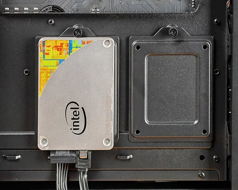 При такой конструкции о быстрой установке или смене накопителей речи быть не может, придется не только снимать правую стенку, но и немало поработать отверткой.
