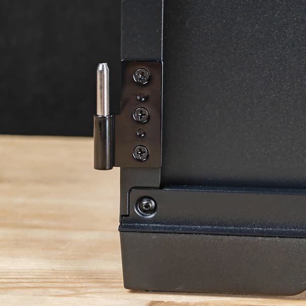 На задней кромке стеклянной левой стенки приклеена стальная полоса с петлями, а в передней части — два сильных магнита, удерживающих ее в закрытом состоянии.