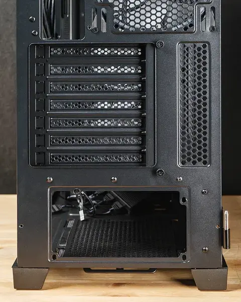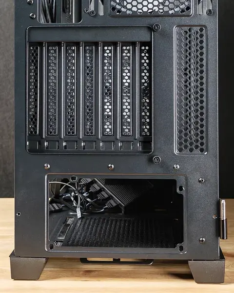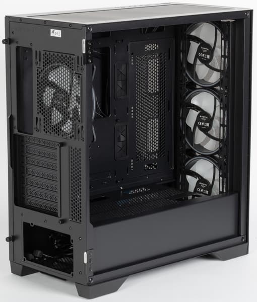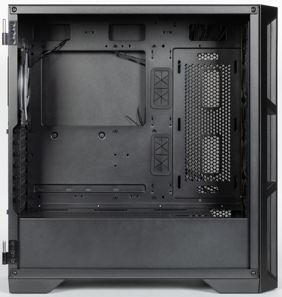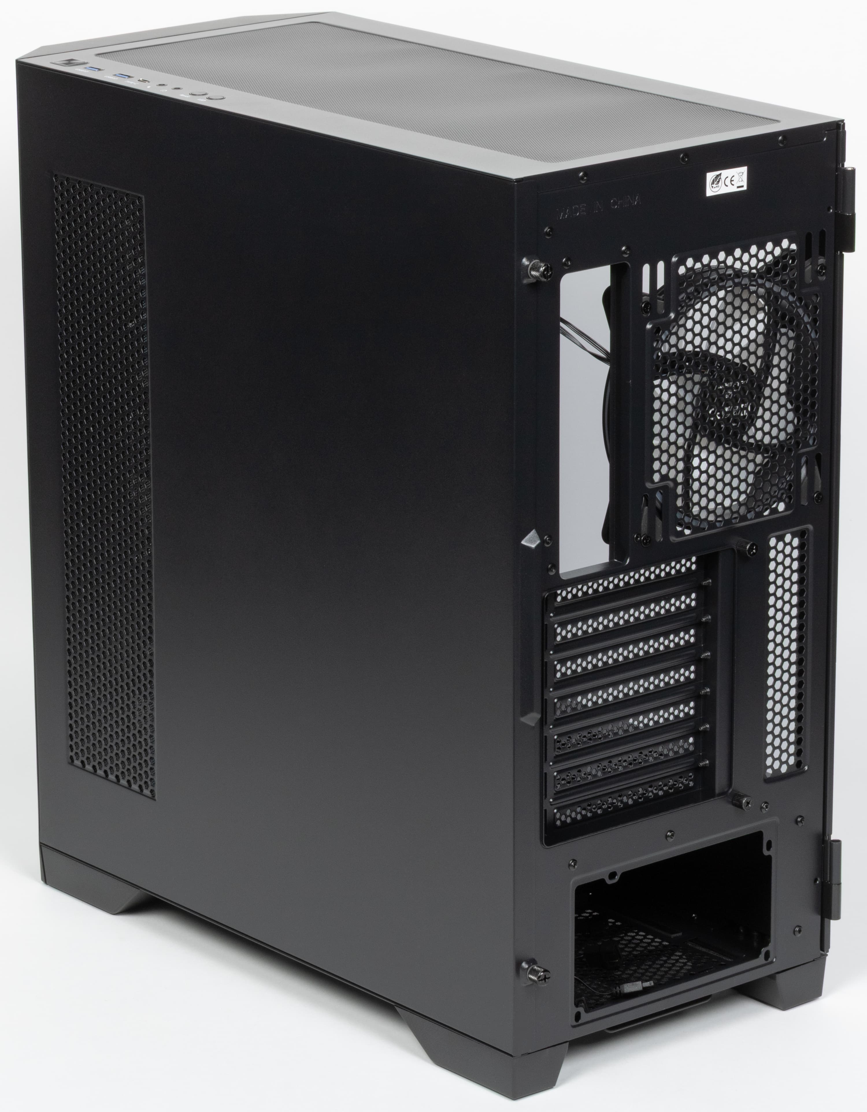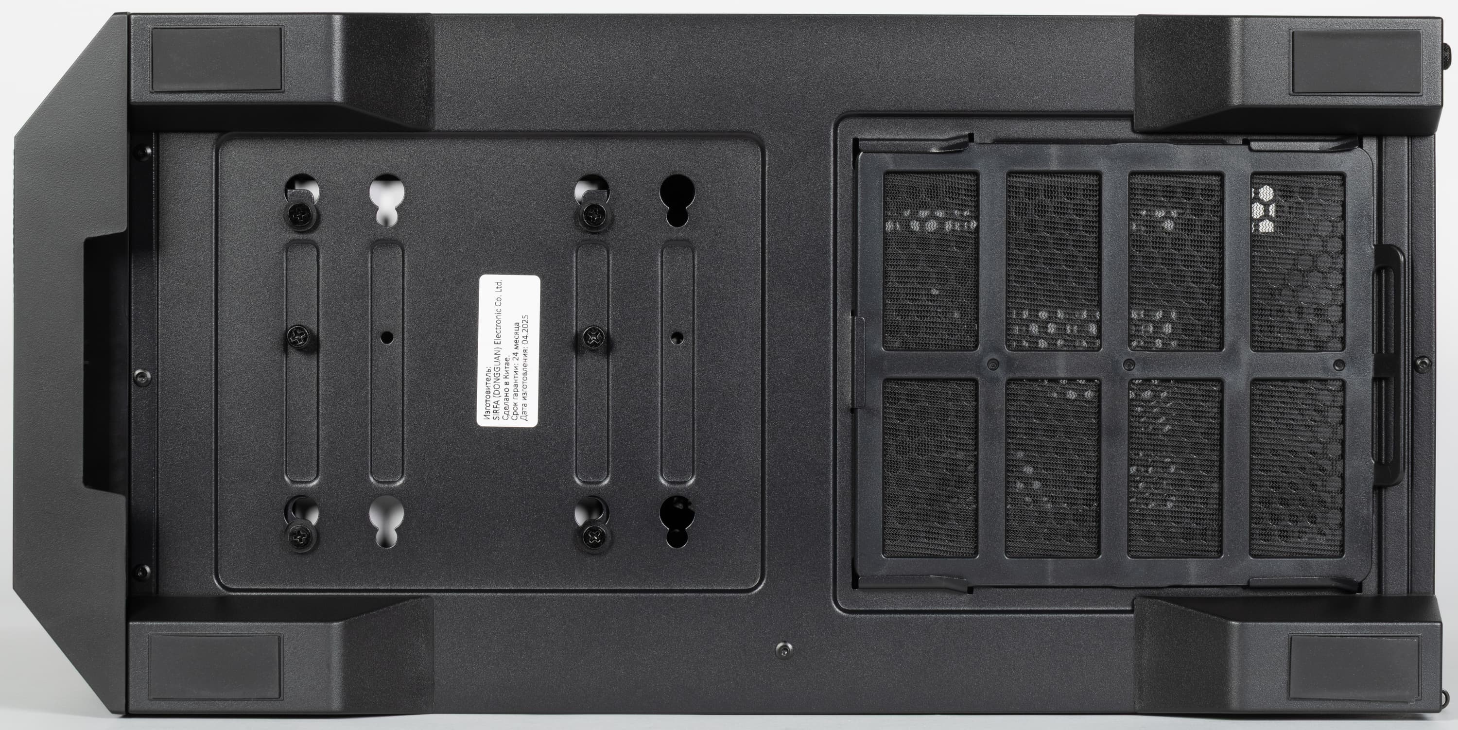 На фронтальной панели, на днище и на верхней панели корпуса, а также в передней части металлической правой боковой стенки имеются большие области с вентиляционными отверстиями, все они оснащены фильтрами.