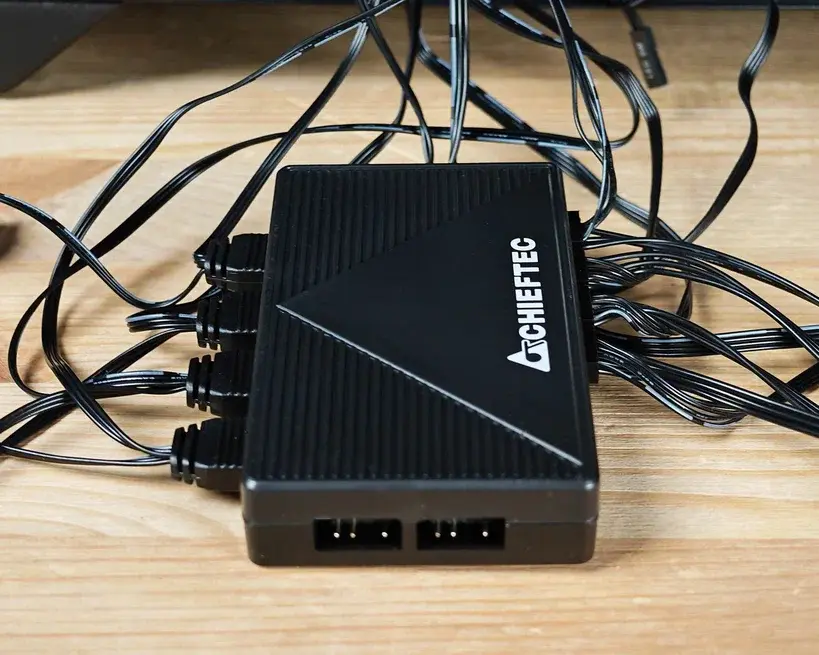 Упоминавшийся чуть выше контроллер подсветки имеет еще и функцию хаба для вентиляторов, соответствующих 4-контактных разъемов у него шесть. Как и у кабелей подсветки, у шлейфов ШИМ имеются дополнительные колодки, к которым можно подключить еще вентиляторы, поэтому общее количество подключений может быть до десяти.