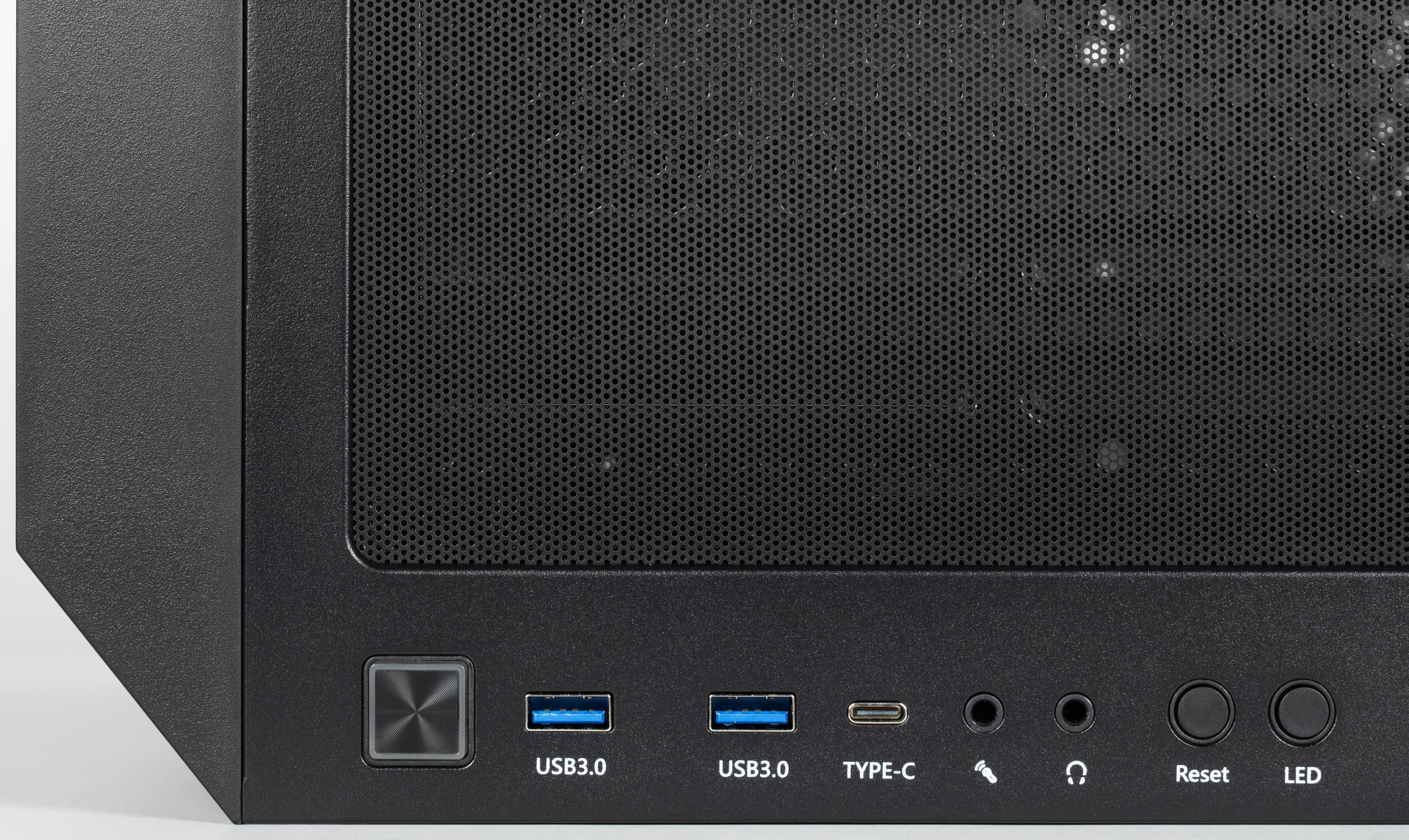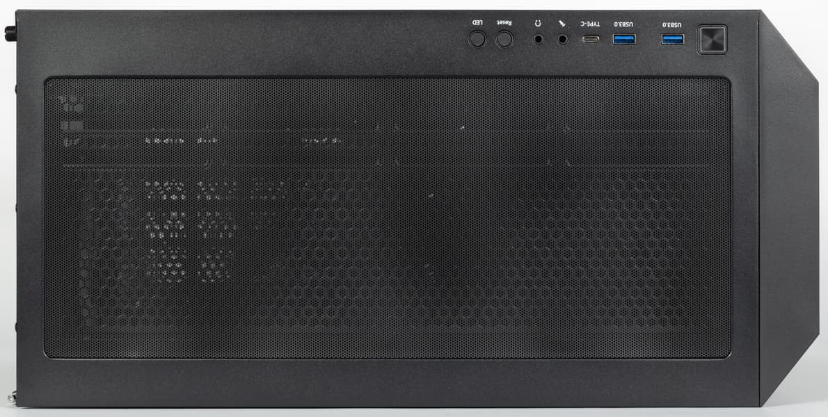 Оснащение интерфейсными портами вполне стандартное: два USB-A, один USB-C, пара миниджеков для аудиоустройств. Надо лишь учитывать, что органы управления и разъемы находятся в правой части верхней плоскости, что ограничивает выбор удобных мест для размещения собранного компьютера.