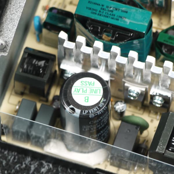 Блок питания оснащен активным корректором коэффициента мощности, дроссель которого упакован в пластиковый корпус в открытом исполнении. Источник питания рассчитан на работу в электросетях с номинальным напряжением от 100 до 240 вольт, то есть имеет расширенный диапазон питающих напряжений. Это может оказаться полезным при работе от сети, в которой имеются значительные отклонения от номинальных значений напряжения.