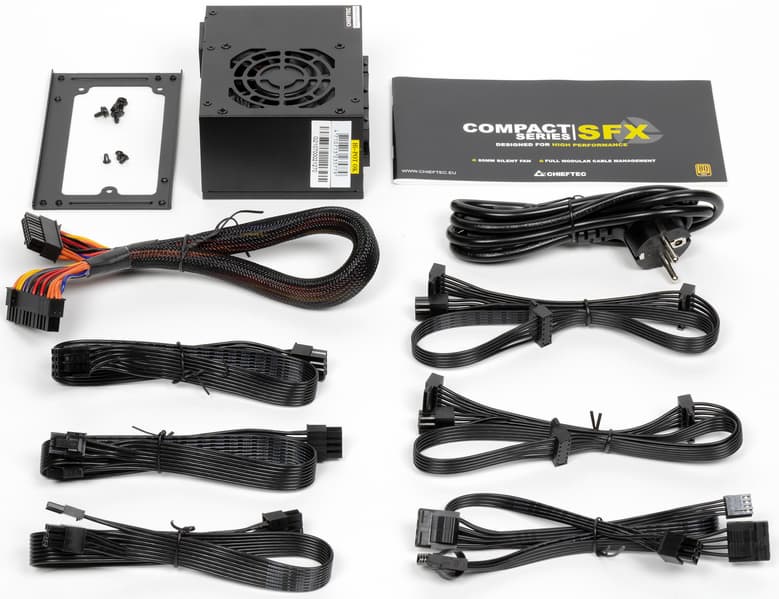 Провода у блока питания относительно короткие, ведь он в первую очередь предназначен для компактных корпусов, где подобной длины в большинстве случаев будет вполне достаточно. С другой стороны, можно было бы укомплектовать БП проводами разной длины для основных разъемов питания, поскольку в миниатюрных корпусах укладка проводов представляет собой довольно затратную по трудоемкости задачу, так что лучше иметь набор проводов разной длины, раз уж все провода у блока питания съемные.