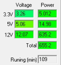 | Нагрузка через разъемы | 12VDC, Вт | 5VDC, Вт | 3.3VDC, Вт | Общая мощность, Вт |