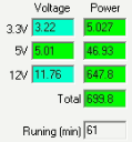 | Нагрузка через разъемы | 12VDC, Вт | 5VDC, Вт | 3.3VDC, Вт | Общая мощность, Вт |