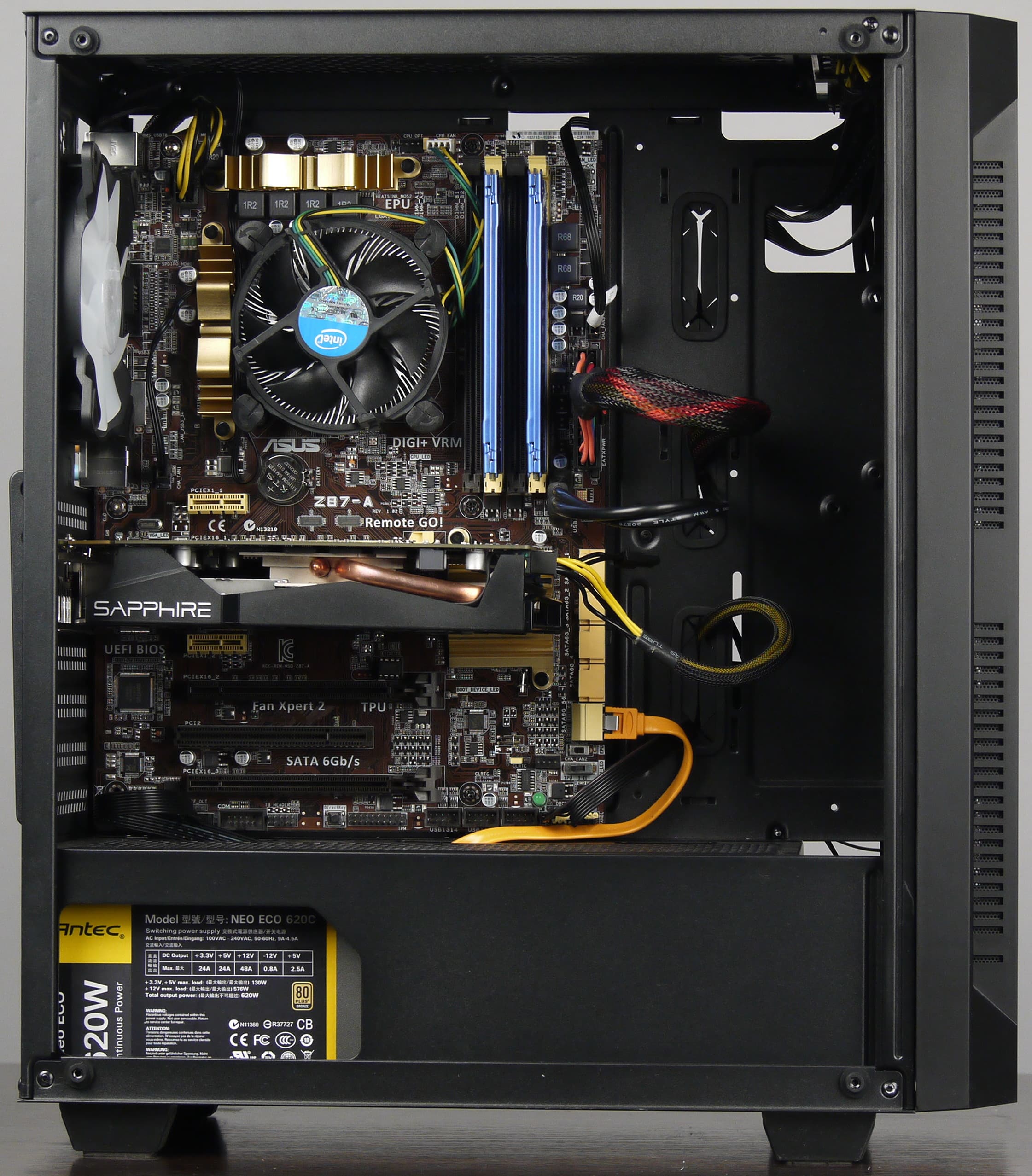 Порядок сборки ПК в данном корпусе особого значения не имеет, так как компоненты разнесены и не мешают друг другу, но лучше начать с установки блока питания и прокладки проводов.