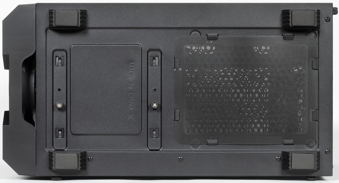 Масса корпуса составляет около 5 кг, из них 1,12 кг весит стеклянная стенка. То есть если бы обе стенки корпуса были стальные, он весил бы около 4,4 кг. Жесткость конструкции соответствующая. Положение частично спасают относительно небольшие линейные размеры корпуса и стеклянная стенка, однако определенной аудитории данная модель не подойдет в принципе.