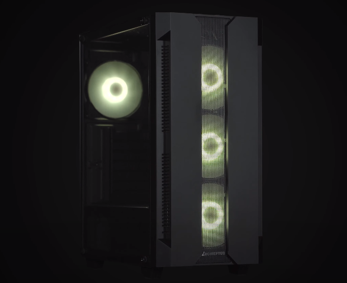 В качестве источника света в корпусе применены вентиляторы типоразмера 120 мм с индивидуальной адресацией светодиодов: три установлены спереди, еще один — сзади. Они подключаются ко встроенному контроллеру при помощи стандартных разъемов типа ARGB с колодкой 1×4 для управления подсветкой и стандартных трехконтактных разъемов с управлением питающим напряжением.
