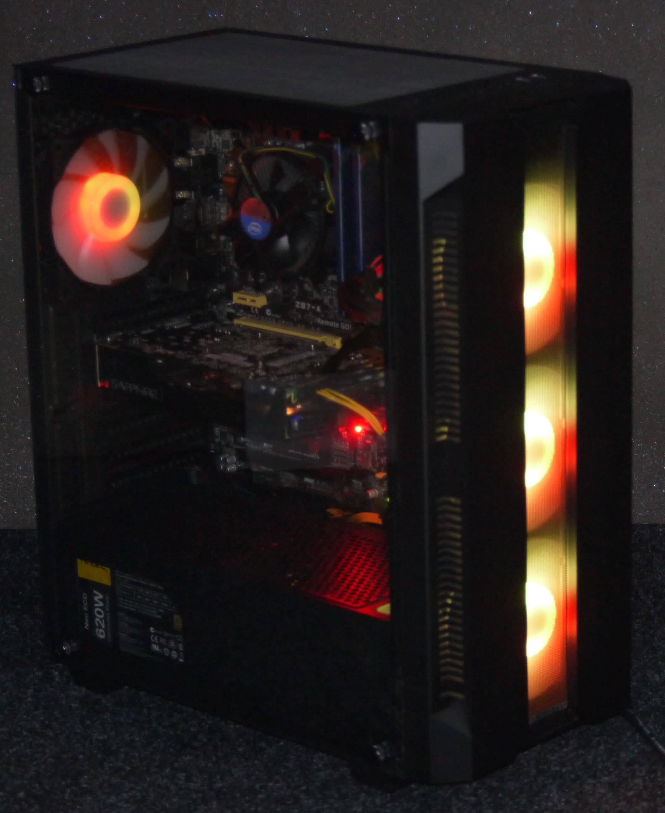 Собирать системы повышенной мощности и с большим количеством дополнительного оборудования, в частности СЖО, в корпусе не очень удобно из-за его небольших габаритов, хотя техническая возможность для этого имеется, поэтому лучше ограничиться башенным кулером с вентилятором 120 мм. Собрать игровую систему средней ценовой категории в корпусе будет несложно.