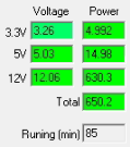 При типичном распределении мощности по каналам отклонения от номинала не превышают 2% по каналу +3.3VDC, 3% по каналу +5VDC и 2% по каналу +12VDC.