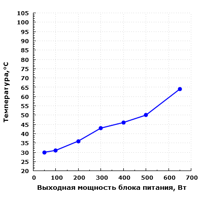 Таким образом, с точки зрения акустической эргономики данная модель обеспечивает комфорт при выходной мощности в пределах 400 Вт, а при мощности до 300 Вт блок питания работает очень тихо.