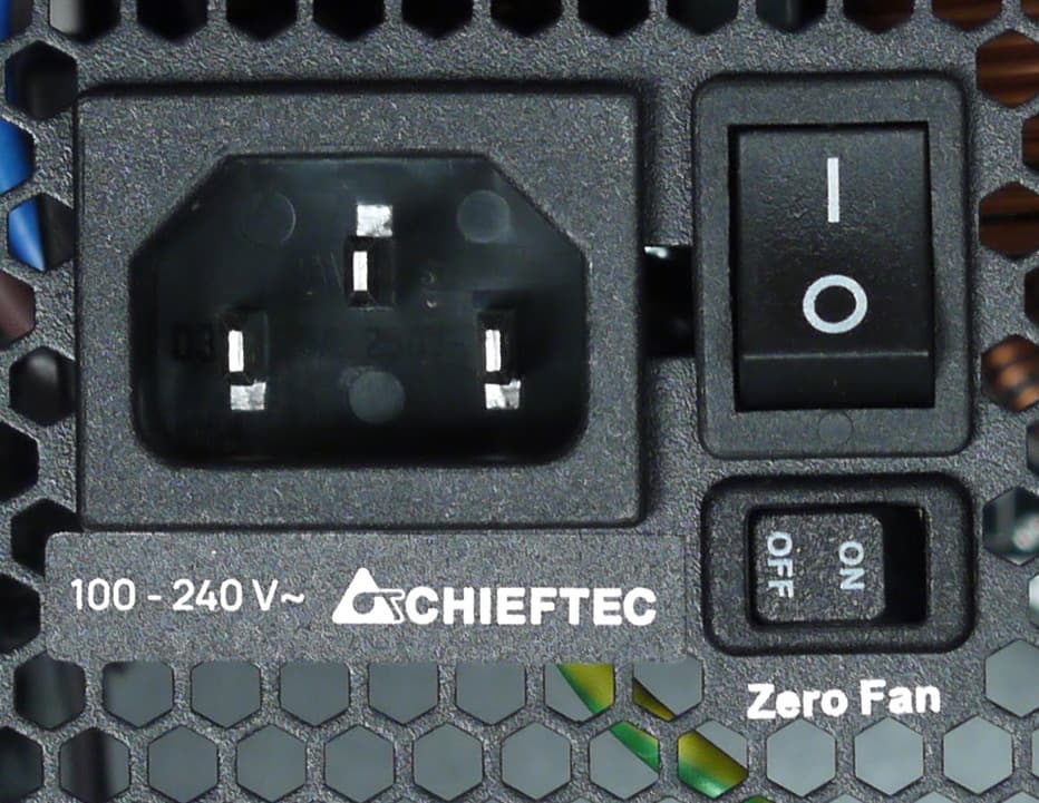 Блок питания оснащен активным корректором коэффициента мощности и имеет довольно широкий диапазон питающих напряжений от 100 до 240 вольт. Это обеспечивает устойчивость к понижению напряжения в электросети ниже нормативных значений.