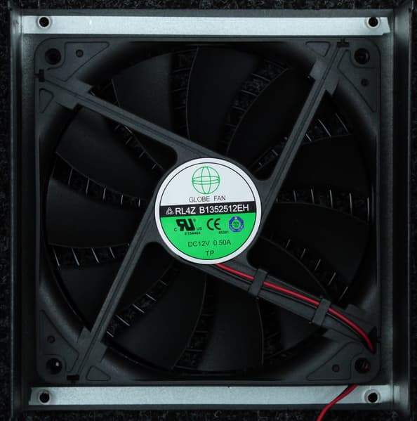 В блоке питания установлен вентилятор Globe Fan RL4Z B1352512EH типоразмера 135 мм, основанный на подшипнике качения. Подключение вентилятора — разъемное, двухпроводное.