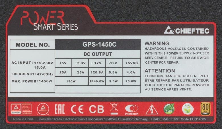 Мы уже знакомились с представителями серии Power Smart компании Chieftec ранее, это были модели GPS-650C и GPS-750C, которые оставили хорошее впечатление. Сегодня же нам предстоит познакомится со старшей моделью данной серии — GPS-1450C, которая также производится в сотрудничестве с компанией CWT.