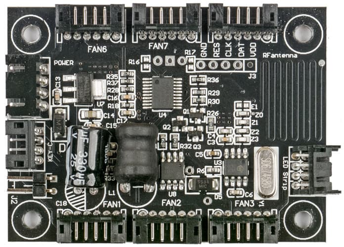 Управление и вентиляторами, и подсветкой не самое типичное: редко можно встретить использование в этих целях беспроводного пульта ДУ.
