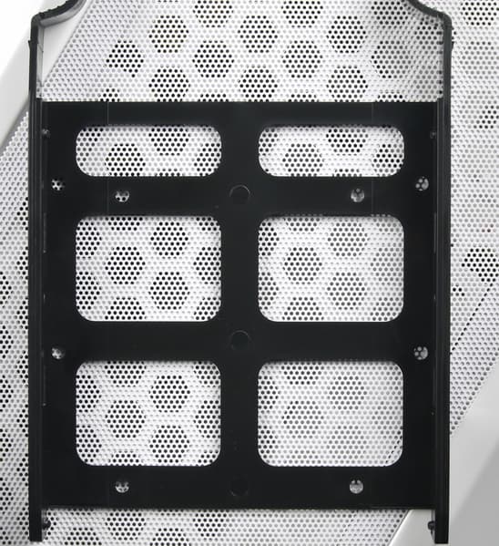 Компоновочные решения данной модели определяются современными тенденциями корпусостроения. В данном случае разработчики отказались от отсека для устройств формата 5,25″, а привычный отсек для устройств 3,5″ расположен около передней стенки шасси, но присутствует он в усеченном виде — всего на два диска. Снять этот отсек нельзя. Посадочные места для накопителей с внешним доступом в корпусе полностью отсутствуют.