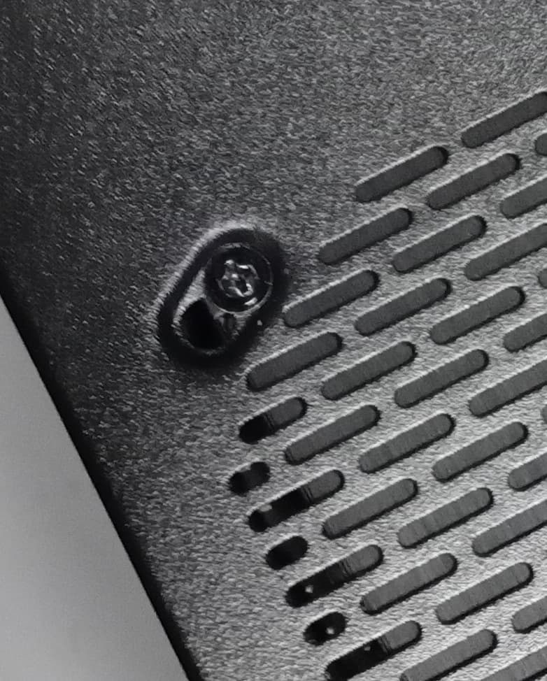 Шасси и все четыре боковые панели выполнены из стали, нижняя и верхняя панели при этом съемные, а узкие боковые — стационарно зафиксированы заклепками.