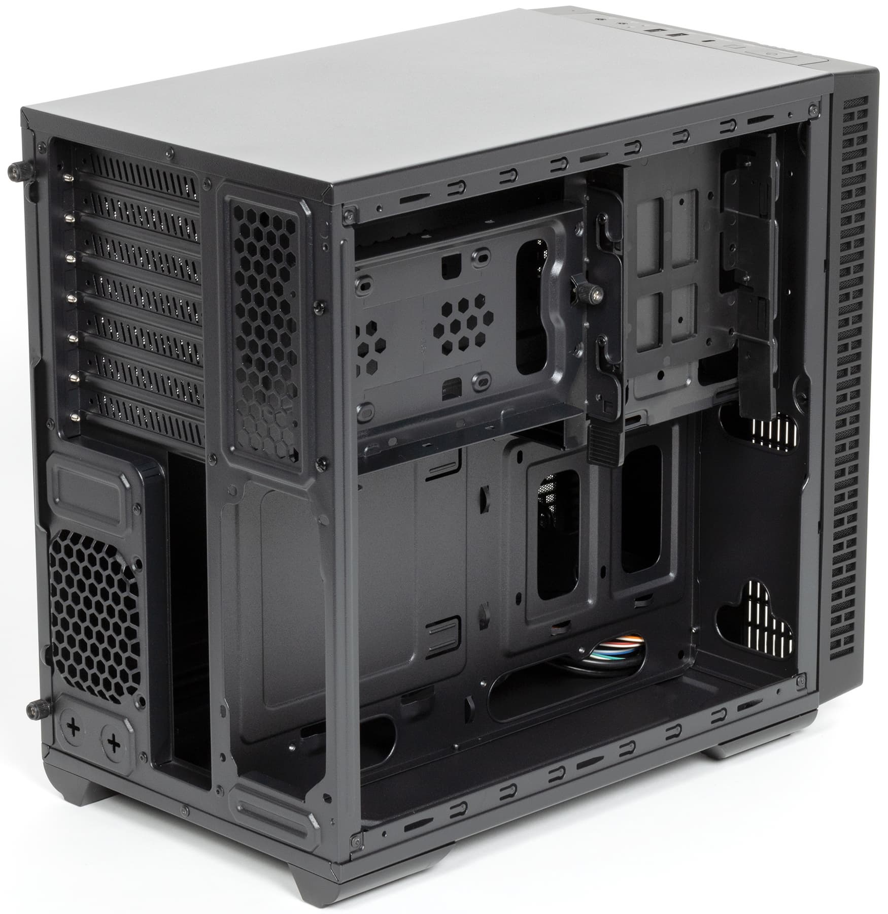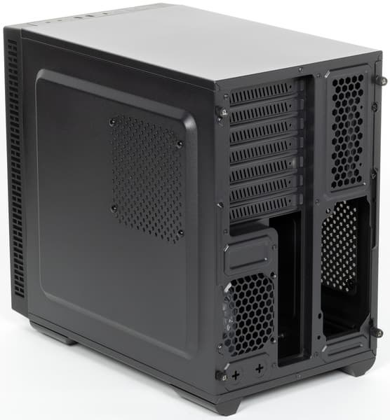 В корпусе предусмотрена возможность установки вентиляторов типоразмера 120 мм, посадочные места для которых имеются спереди. Сзади можно установить один вентилятор типоразмера 80 мм. Сверху вентиляционные отверстия в корпусе отсутствуют, зато они есть на боковых панелях с двух сторон: с левой стороны — около блока питания, с правой — в районе размещения плат расширения.