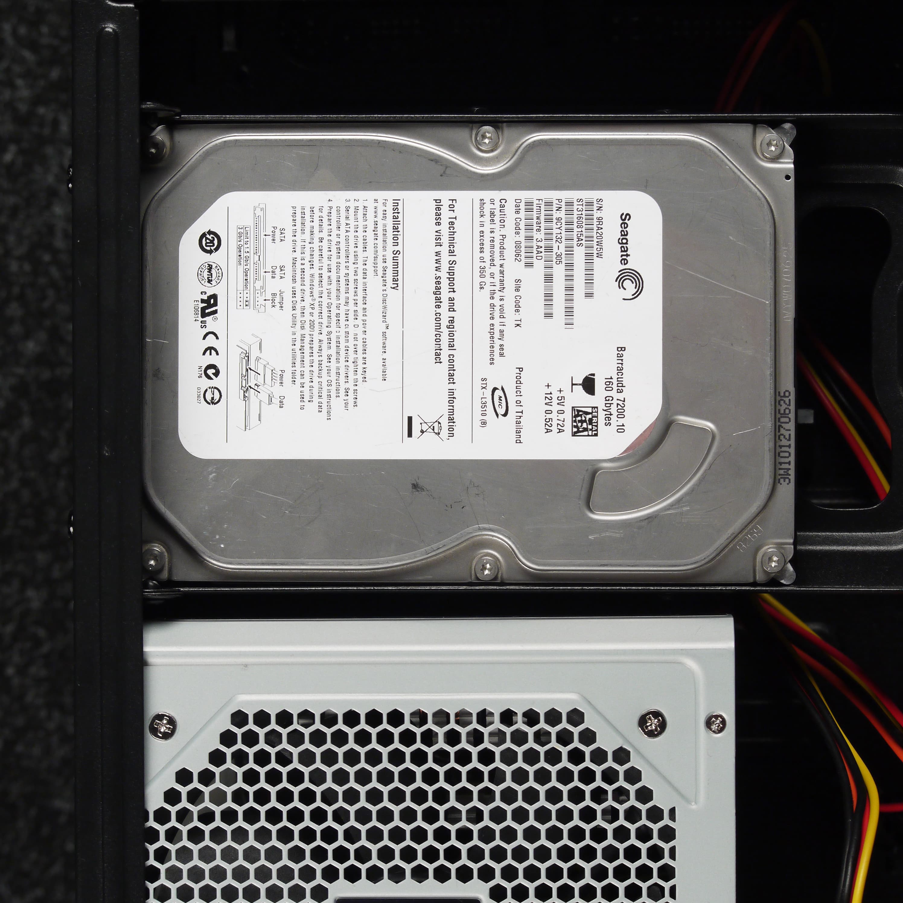 Первое посадочное место находится около передней стенки шасси. Полноразмерный 3,5-дюймовый диск устанавливается через пластиковую рамку, винчестер крепится с помощью винтов по бокам или через дно. Надежность крепления относительно высокая. Правда, сама рамка фиксируется только при помощи зацепов, но есть фиксатор положения, поэтому крепление создает впечатление достаточно надежного. Также в эту рамку можно установить накопитель формата 2,5 дюйма с креплением винтами через дно.