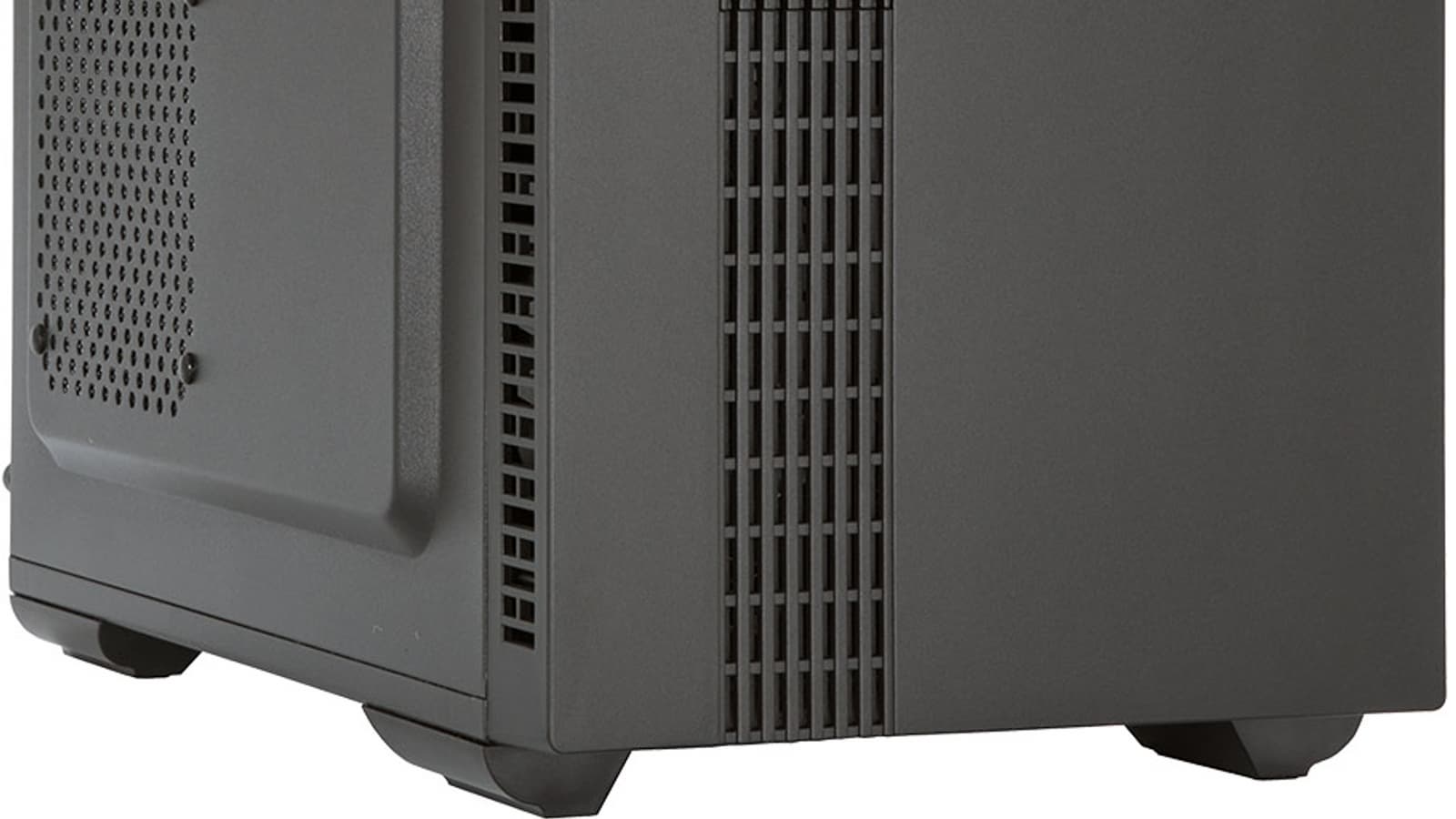 Базируется корпус на четырех прямоугольных ножках из пластика, которые имеют накладки, выполненные из вспененного материала. Лицевая сторона ножек выполнена гладкой. Это, конечно, не резина, но в случае бюджетных корпусов такой вариант вполне допустим.