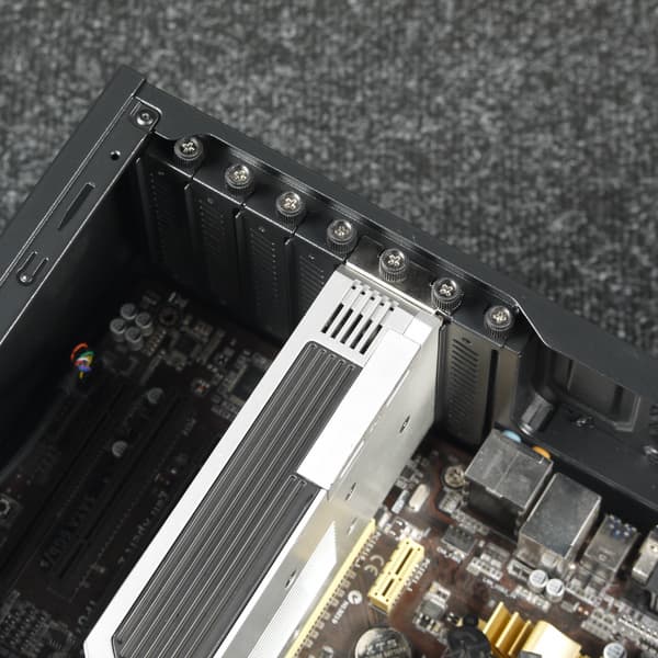 Система фиксации карточек — самая обычная: крепление на винтах с накатной головкой изнутри корпуса с индивидуальной фиксацией. Все заглушки для плат расширения многоразовые и фиксируются винтами.