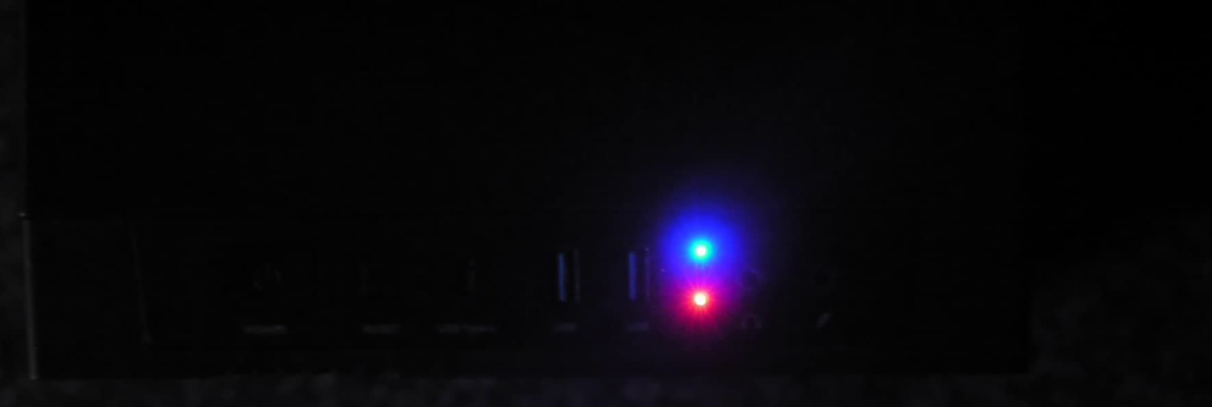 Располагаются кнопки рядом, но из-за разницы в размерах вряд ли будут путаться. Индикатор включения — голубого цвета, индикатор активности накопителей — красного.