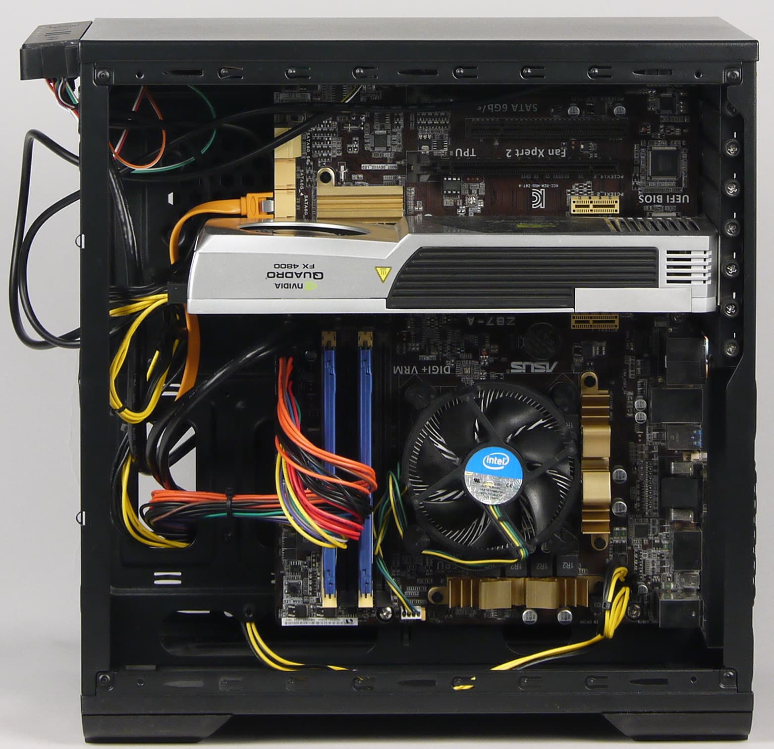 Несмотря на оригинальность конструкции, собирать систему в данном корпусе довольно удобно благодаря сравнительно небольшим размерам корпуса, а также наличию прямого доступа к БП с возможностью визуального контроля вращения вентилятора.