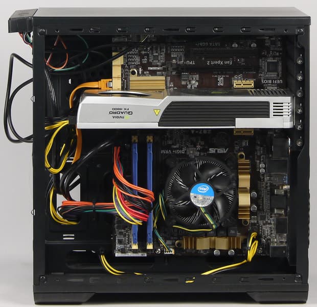 Порядок сборки ПК в данном корпусе особого значения не имеет, так как компоненты разнесены и не мешают друг другу, но лучше начать с установки блока питания и прокладки проводов.